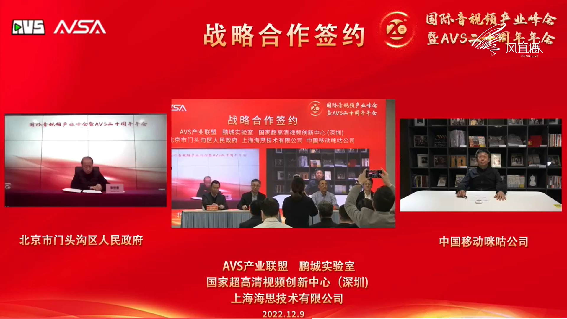 2022年12月9日上午,“国际音视频产业峰会暨AVS二十周年年会”以线上线下结合互动的方式在深圳主会场隆重举行。会上,中关村门头沟园党工委书记、管委会主任李世春代表门头沟区与中关村视听产业技术创新联盟(AVS产业联盟)在线上签署战略合作协议。