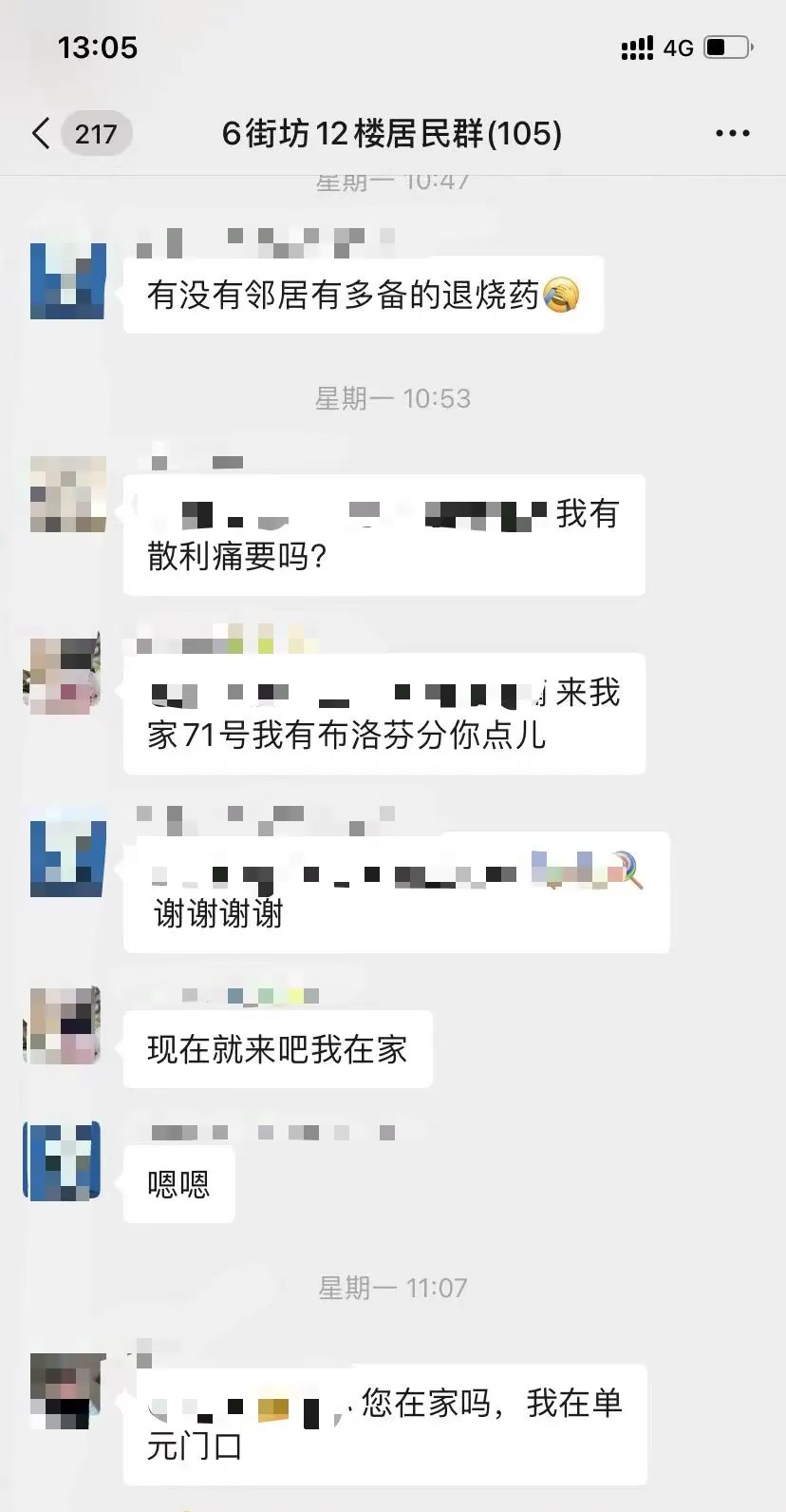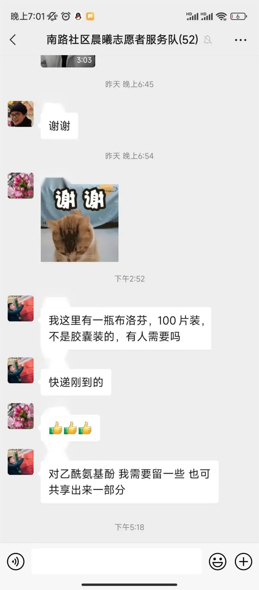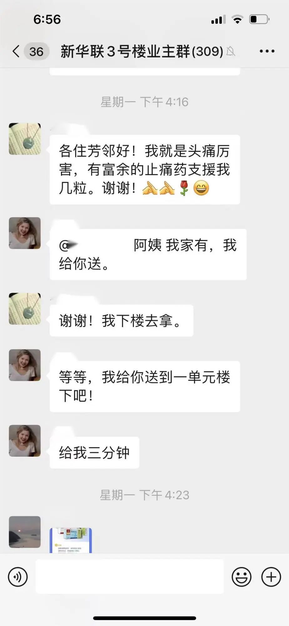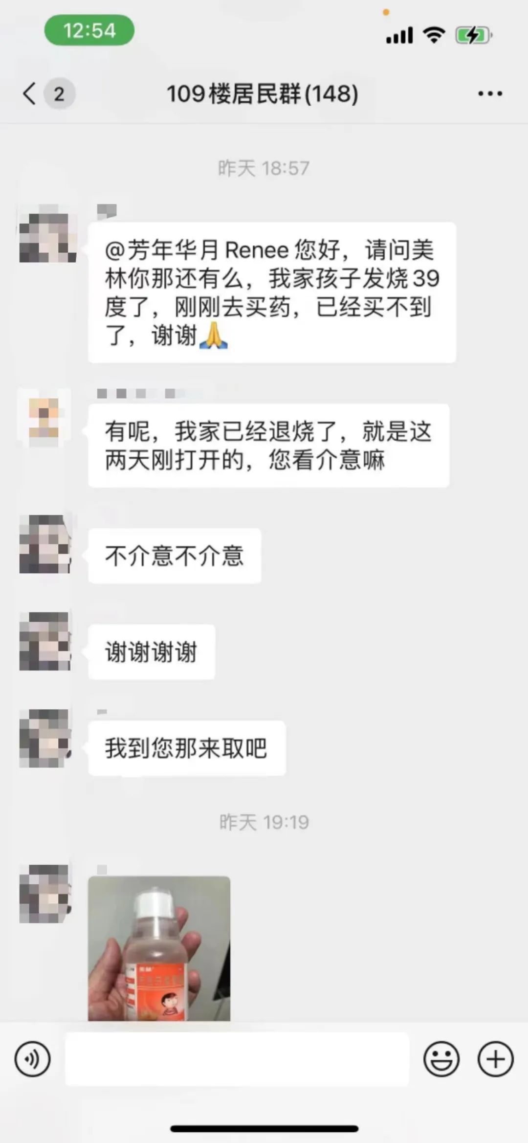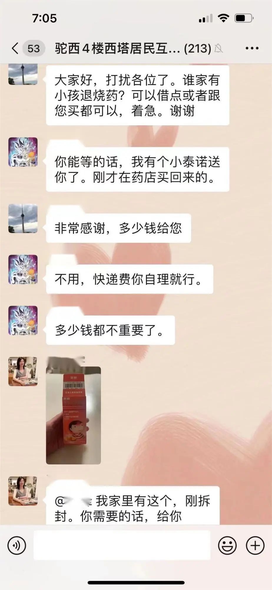 微信群内忙问需,暖邻慷慨解囊共享药品