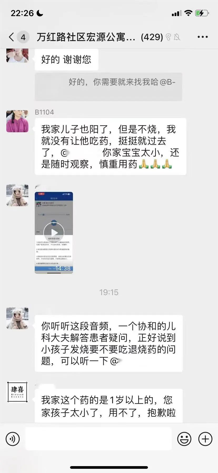 一时间内,微信群里,大家你一言我一语,有支持的、有送药的、有帮忙的,温馨安慰的话语通过互联网,一下让这位宝妈安心了不少。