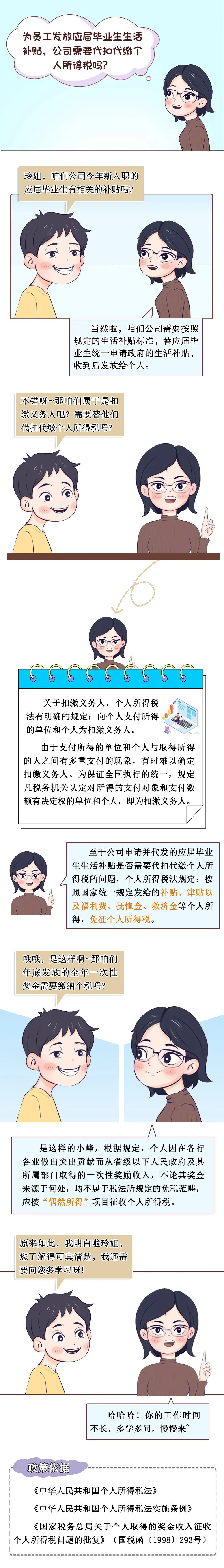 税务云课堂|为员工发放应届毕业生生活补贴,公司需要代扣代缴个人所得税吗?