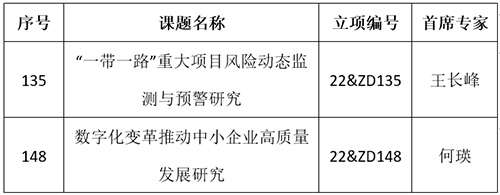 近日,全国哲学社会科学工作办公室网站公布了2022年度国家社科基金重大项目立项名单,我校经济管理学院王长峰教授申报的《“一带一路”重大项目风险动态监测与预警研究》、何瑛教授申报的《数字化变革推动中小企业高质量发展研究》成功获批国家社科基金重大项目立项。