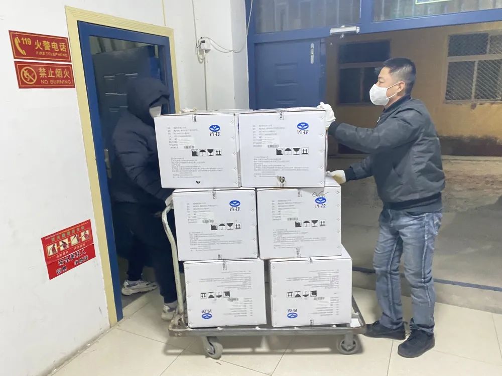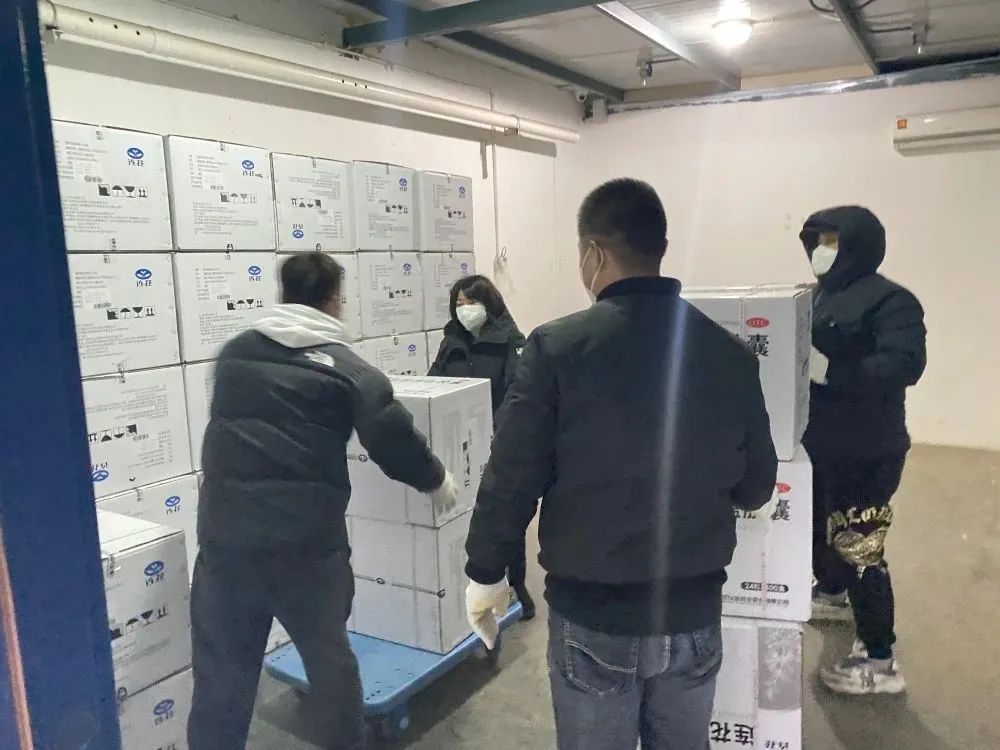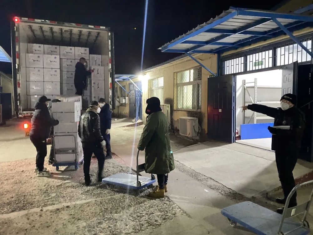 2022年12月19日凌晨2点,15万盒连花清瘟胶囊运抵怀柔区药品配送仓库,区市场监管局工作人员现场监督协调,对供应药品进行清点、记录,登记药品名称、数量、入库时间,填写《药品接收配送清单》,配送人员立即卸货、入库、分装,连夜发往全区20家医院、乡镇卫生院、社区卫生服务中心。