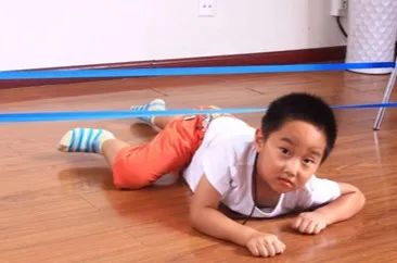 用绳子(或胶带等)在走道里做成类似障碍。要求孩子在不碰到胶带的情况下,穿越这个走道。