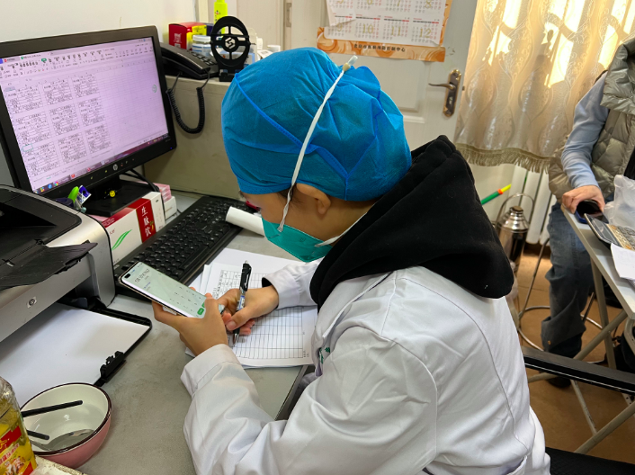 工作中的怀柔区长哨营满族乡社区卫生服务中心家庭医生彭玉强