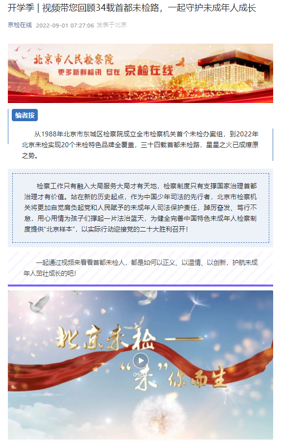 图为《视频带您回顾34载首都未检路,一起守护未成年人成长》点击图片查看详情
