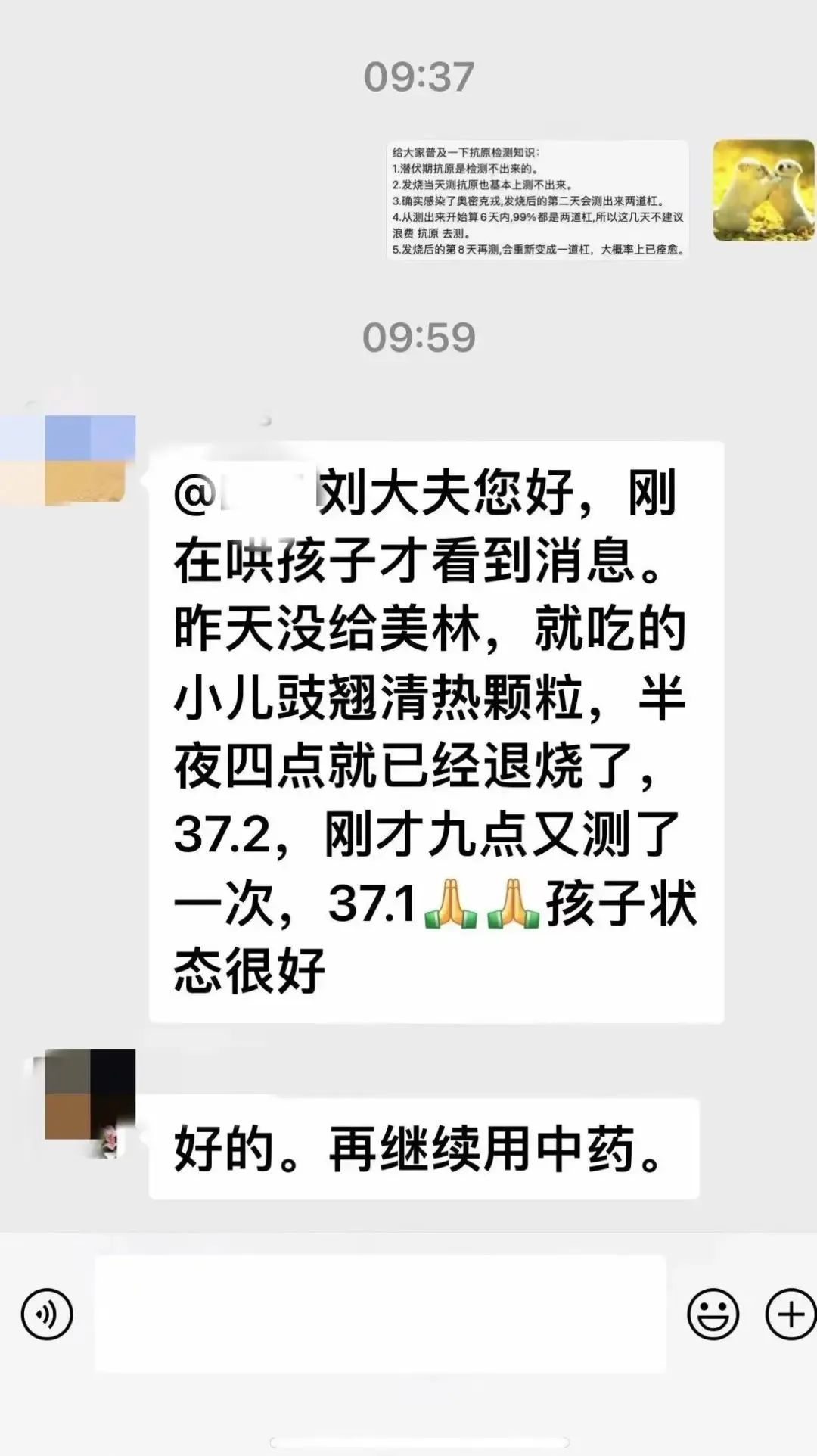 “孩子不会说,又不停地在那儿哭,当时我确实有点儿六神无主。刘大夫跟我说了一些降温办法,我心安了很多。第二天孩子状态好一些了,刘大夫继续指导我用药。真的是非常感谢!”贾女士说道。