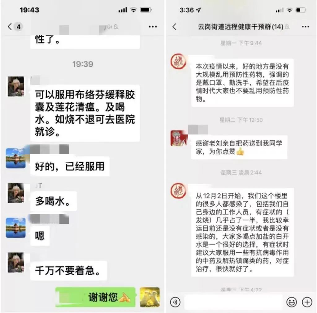 为全力保障群众居家康复,各社区建立了“两连三询”机制,每日两次利用微信、电话连线,主动问询居家阳性人员的健康情况、物资需求和心理状况,及时提供防护物资保障和心理疏导服务。