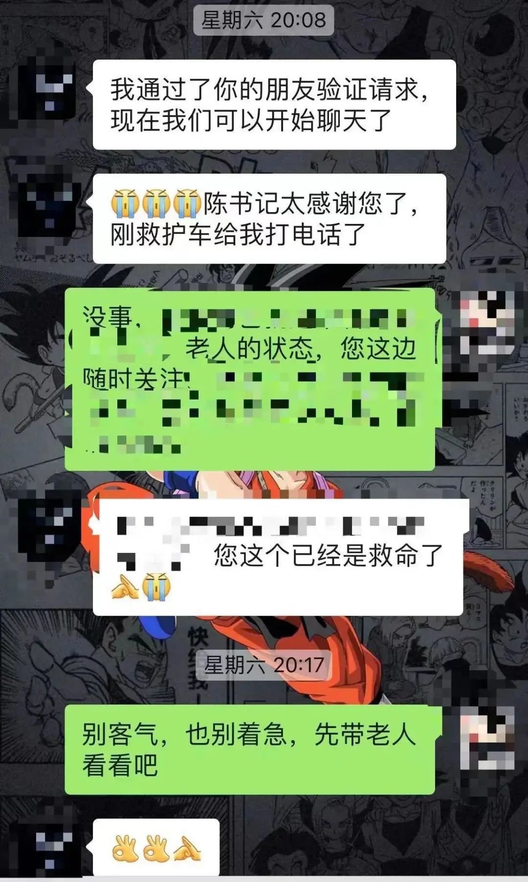 陈鑫鑫一边安抚居民情绪,一边迅速将情况报送至街道工作组。街道立刻协调救护车,将患者转运至医院。由于处置迅速、就医及时,曹先生的母亲得到了有效救治。