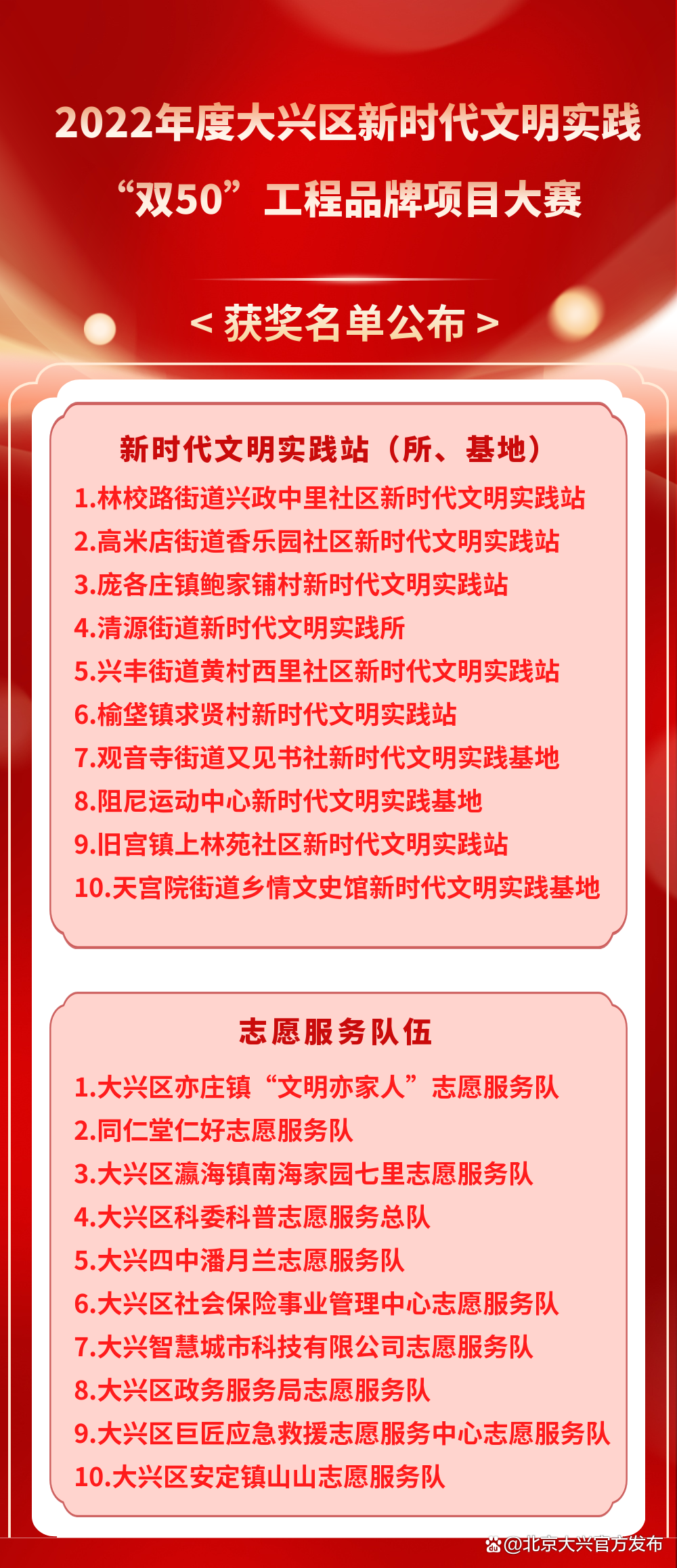 近日,由大兴区委宣传部、区文明办组织开展的以“文明共实践,筑梦新国门”为主题的2022年度大兴区新时代文明实践“双50”工程品牌项目大赛圆满落幕。经过决赛的激烈角逐,最终由评委会专家组从文明实践 、服务民生、社会治理、文化教育、科技创新、生态文明、卫生健康、安全应急等多维度对申报项目进行评审,共有10个阵地和10支志愿服务队脱颖而出,荣获大兴区新时代文明实践“双50”工程品牌项目奖。