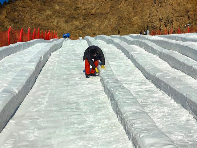 走进千灵山冰雪体验营地,只见晶莹剔透的冰屋、冰城堡,雪雕,白雪覆盖的地面,120米超长雪道,30多米长的裸眼3D互动墙映入眼帘。“冰雪体验营地将近40000平方米,40多种全新雪上游乐设施,大人和孩子可以痛痛快快玩上一天。”千灵山冰雪体验营地相关负责人李楠介绍,“正在打造2500平户外天然冰湖,游客可以在冰面上玩玩老北京冬日记忆的小冰车、碰碰车,1月中旬成型的2400平米冰瀑布也将会成为京西新晋打卡地。”