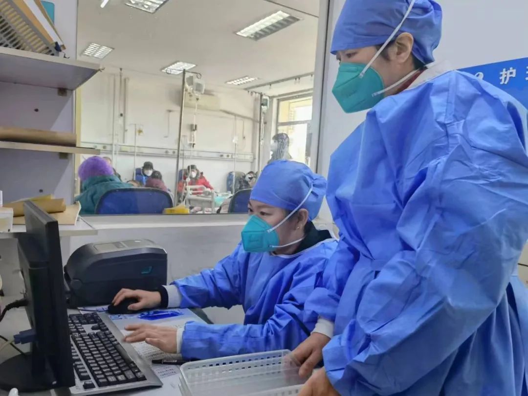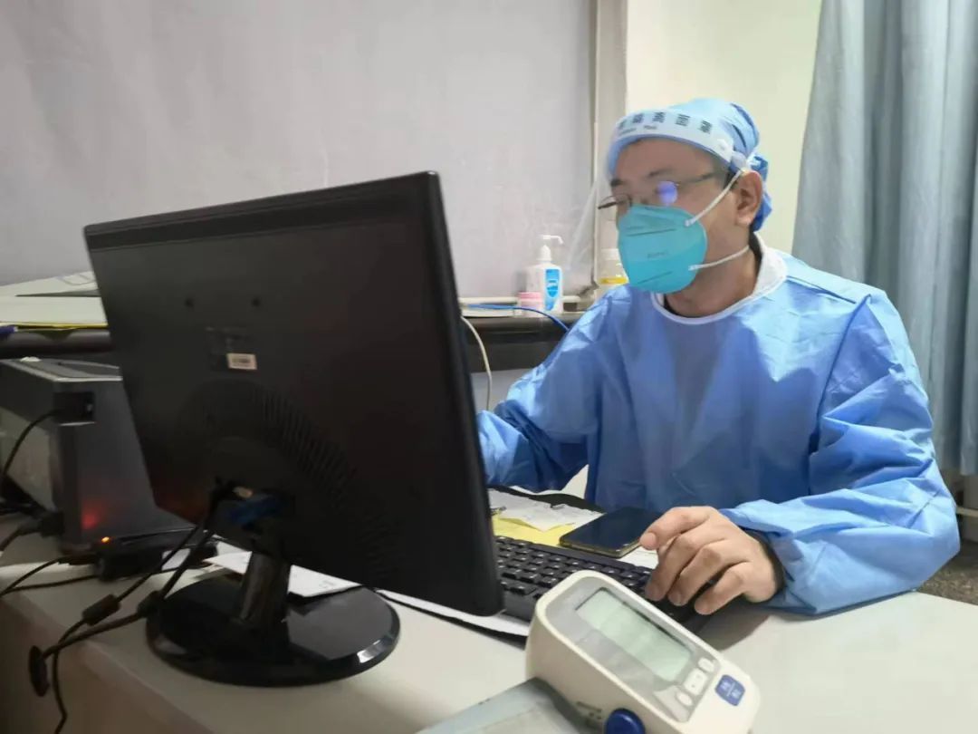 在急诊支援的消化内科专家杨玲在为患者开出诊断。