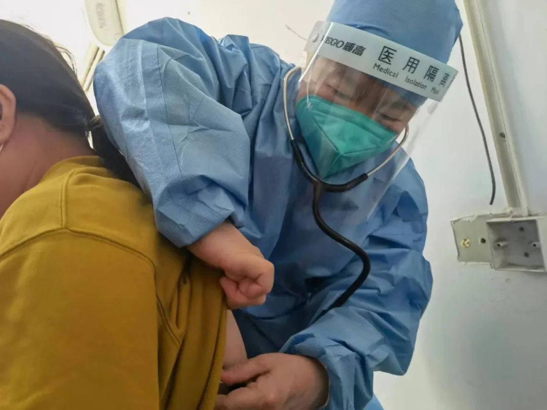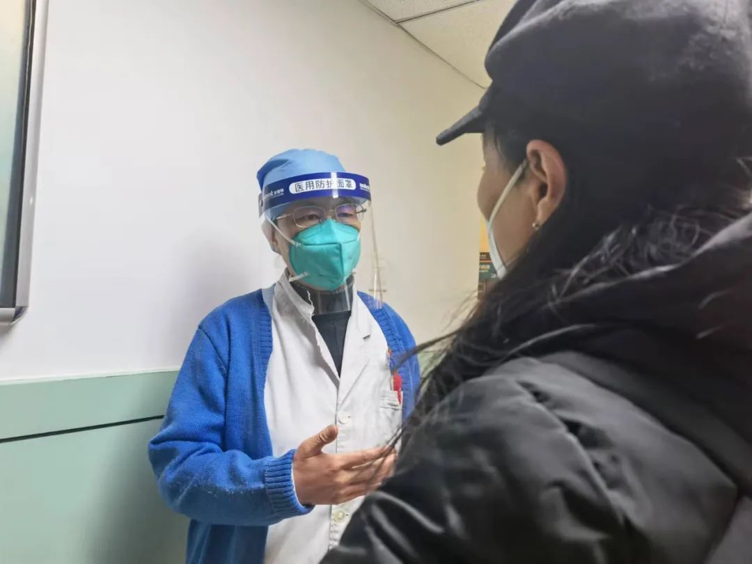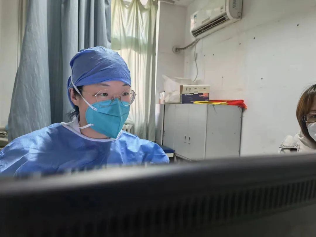 呼吸科主任周秀梅在呼吸科门诊为普外科医生樊露会诊。樊露也是带病坚守着。