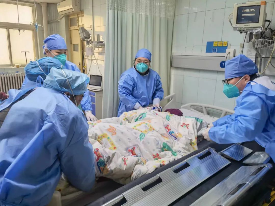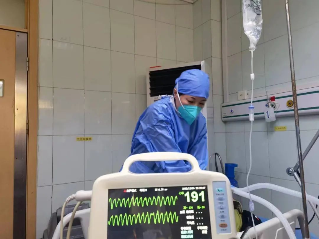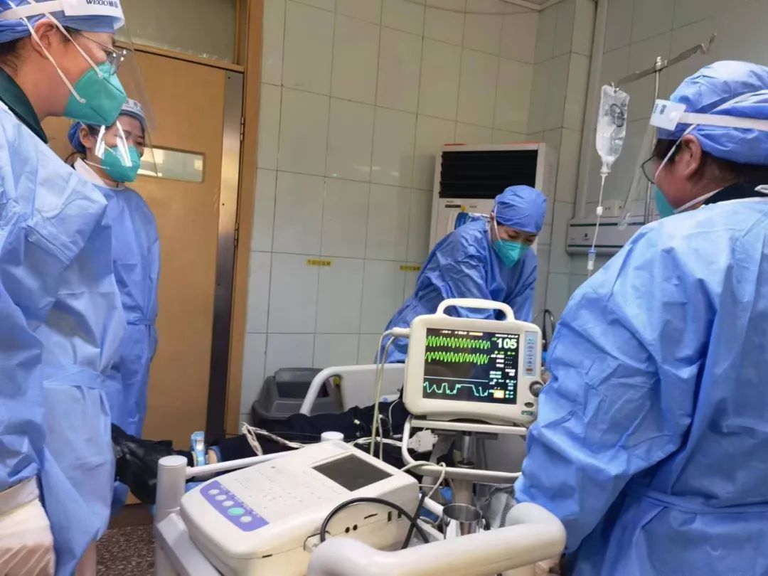 在急诊抢救室,护士们一起熟练快速地给刚送来的重症患者佩戴监护设备。