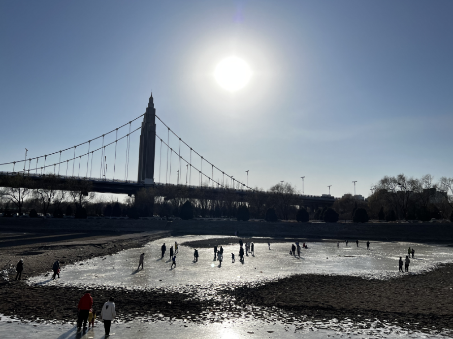 记者看到,靠近岸边的河面上,冰层冻得并不结实,只有薄薄一层。“那边中午能晒着太阳,温度高,冰冻得不结实。”一位在此滑冰的老人告诉记者,“这地方属于野冰,谁要是摔了、碰了,或是掉进冰窟窿里,那可没人管,只能自认倒霉。”