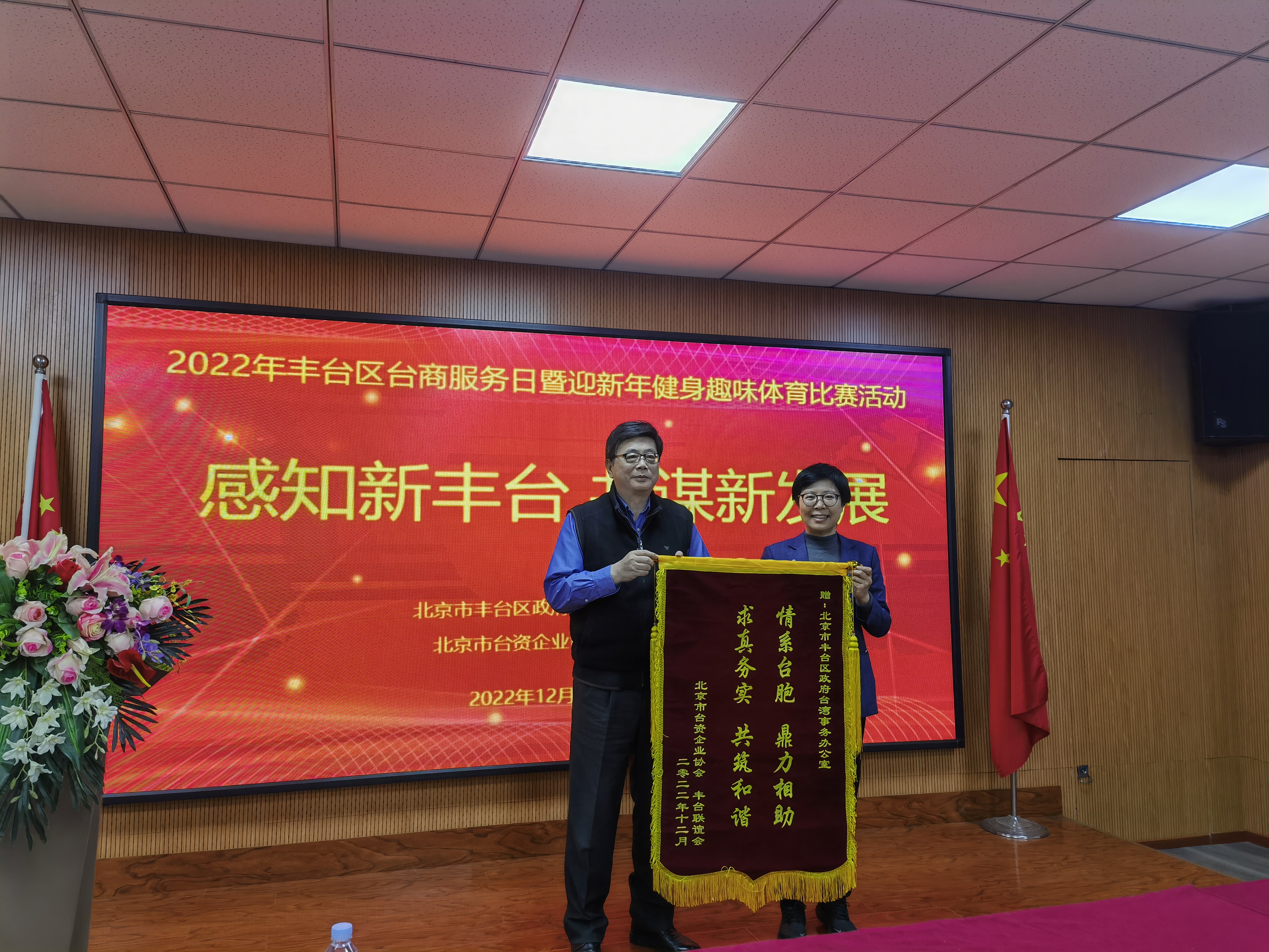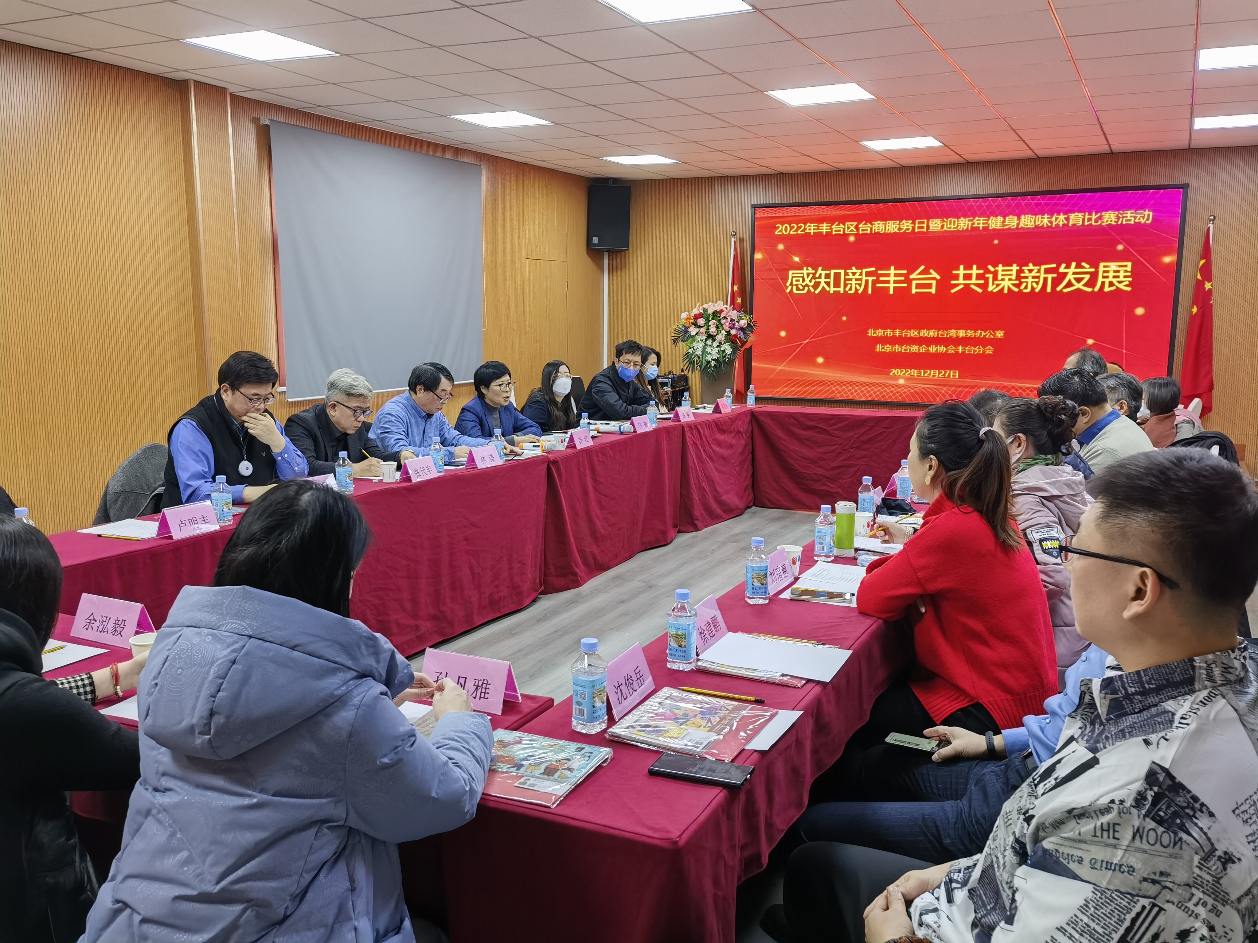 12月27日,丰台区在中食文化产业园举办台商服务日暨台胞迎新春健身趣味比赛,活动以“感知新丰台 共谋新发展”为主题,丰台区委统战部分管日常工作的副部长、台办主任薛红主持,区发改委、商务局和市场监管局等相关部门、北京台资企业协会丰台分会和驻区台胞台商等30余人参加。