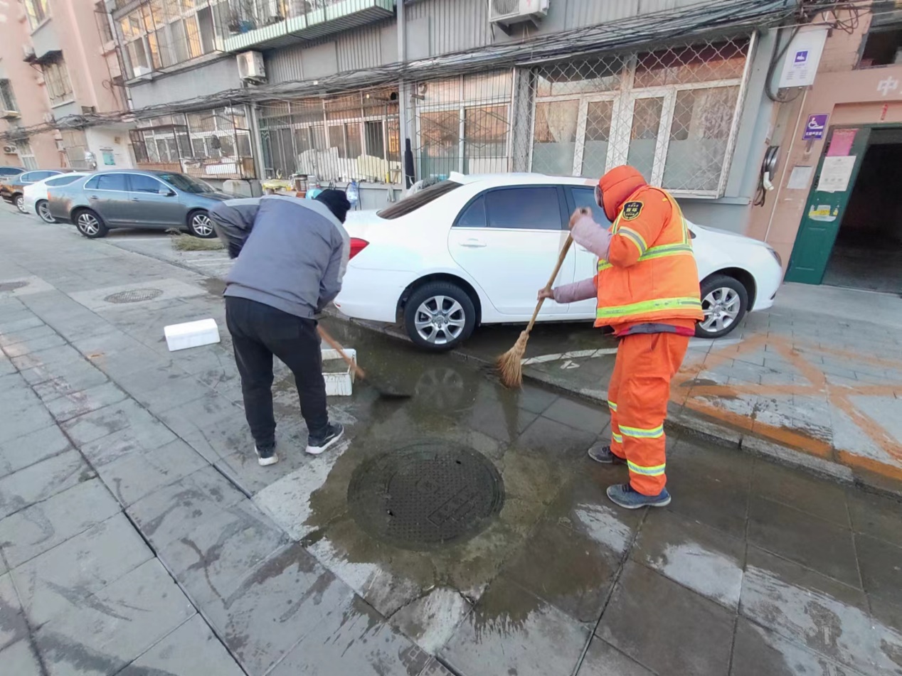 12月28日,展览路街道阜外东社区接到南礼士路甲一号院居民电话,反映自家楼前污水井每天晚上返污水,返出来的污水再一结冰,居民出行非常容易滑倒。社区工作人员立刻赶到现场,一方面联系物业报修,另一方面,协调相关工作人员凿冰、铲冰,避免出行居民滑倒。