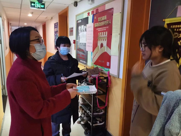 张晗老师负责学生核酸督促工作和大数据的核查工作。她组织学生会的公共事务管理部和生活权益部带头,每日提醒和监督同学们疫情打卡。精准对接每一位同学、紧急排查京内外北京健康宝以及核酸超期情况。张晗老师表示:”我们不仅会对核酸超期同学进行一对一核实原因,还会对他们进行督促和发放超期通知单。出现弹窗的同学,会有学生干部联系班级负责人并且告知弹窗同学了解情况。无论是京内同学还是出京返家的同学,都将疫情防控措施落到实处。志愿者联合会的同学带头落实校园疫情防控措施,主动参与疫情防控工作,树立起服务意识,做好疫情防控工作的“宣传员”和“践行者”,合力构筑抵御疫情的严密防线,彰显新时代青年的使命担当,为疫情防控工作贡献青春力量。