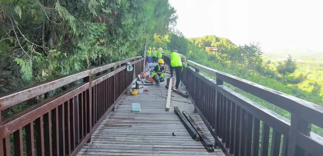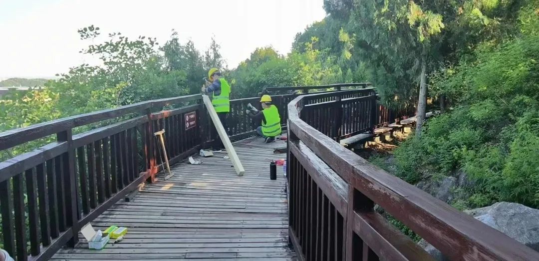 该工程共包括三部分建设内容,分别是雁栖湖生态发展示范区重点区域基础设施提升、雁栖湖北路及滨水提标、“汉槐节点”景观提升,具体包括修复翻新破损木栈道、修缮标识标牌、联络线绿化景观提升等32项具体任务。“西山栈道沿线景色宜人,是很多市民游玩的首选。为更好的提升游览体验,我们检查修复翻新了破损木栈道,沿线标识路牌也进行了修缮。”项目相关负责人介绍,除此之外,在基础设施提升方面,综合整体景观和市民需求,还开放了7座外观融入会都整体建筑风貌的公厕。