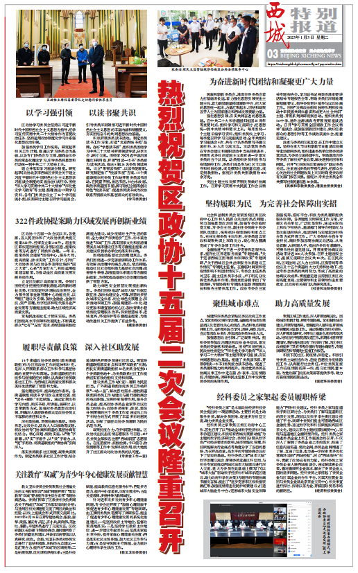聚焦区域工作重点,深入开展协商议政。围绕城市更新计划,开展专题协商。紧扣韧性城市建设,开展专题调研。着眼提升人居环境,开展城市管理民主监督工作。通过整理发放相关资料,深入开展调查研究,召开线上座谈会,组织考察活动,对我区的平房院落改造工作、汛期排水管网管理情况、整治违法建设有了初步的了解,为区委区政府提供了具有参考价值的专题协商报告、专题调研报告和专项民主监督工作报告。