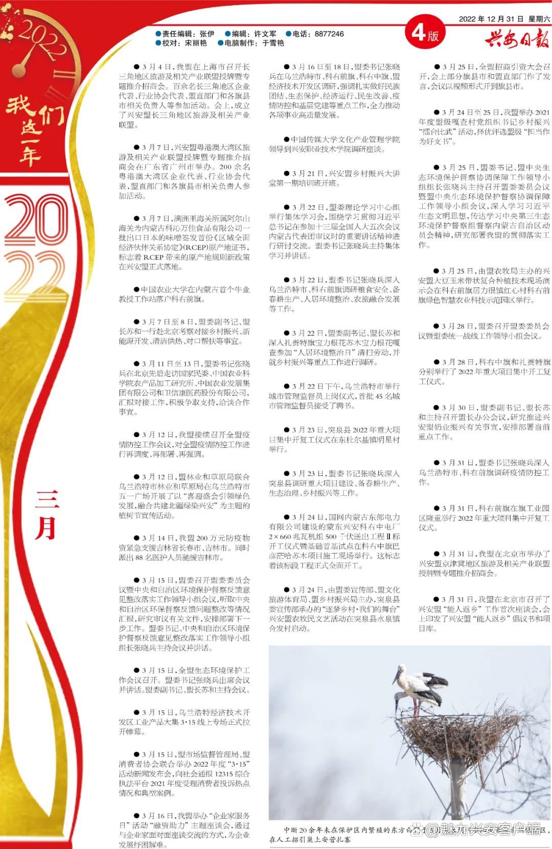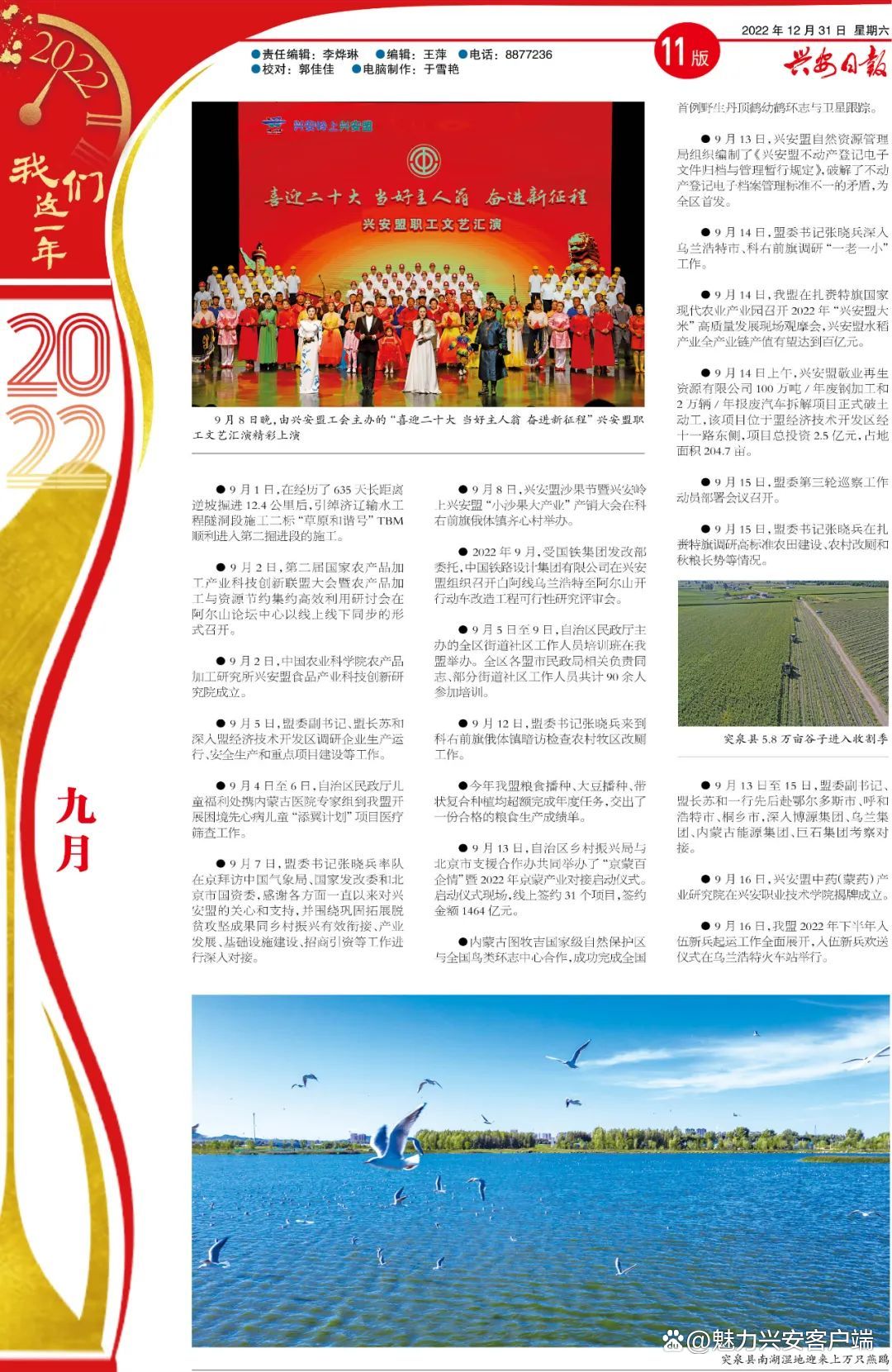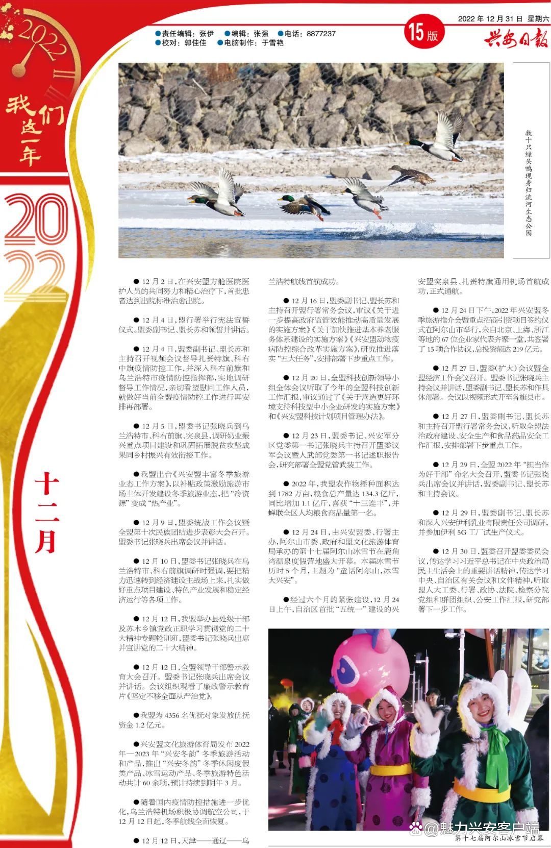 凝心聚力创伟业,勇毅前行再出发。站在一年的终点回望,有过艰难,也收获光荣与成长,共同见证了许多大事件的发生,2022年12月31日,《兴安日报》推出年终特刊——2022·我们这一年!