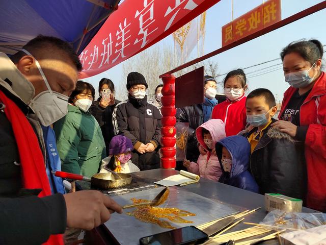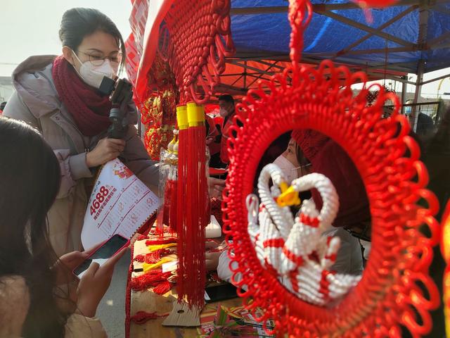 大集上,除了农产品、糖果花卉、干鲜海货,还有正在挥毫泼墨的志愿者,免费赠送出一幅幅文明宣传日历和春联。此次黄河大集,还尽显“非遗”特色,剪纸、草编、黑陶、烧肉、白猿通臂拳等30多个颇具地方特色的非遗项目现场摆摊,吸引了大批百姓们驻足观看。