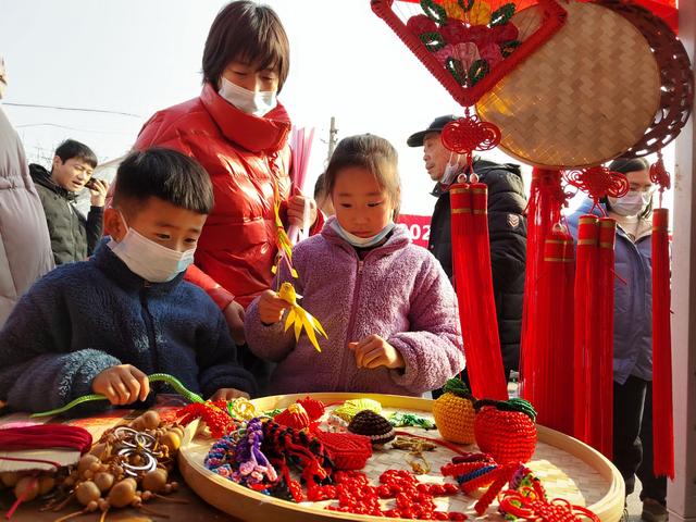 图为在相州大集上,一家人正在欣赏诸城绳编