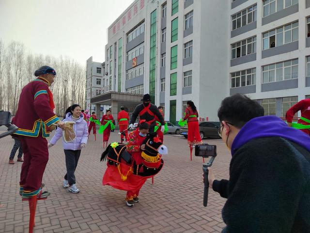 图为在相州大集南侧,乡亲们正在踩高跷,游人们高兴地参与进去