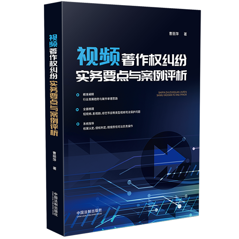 2022年《视频著作权纠纷实务要点与案例评析》一书正式出版,这是第六届北京市审判业务专家、北京市高级人民法院民三庭曹丽萍法官的又一力作。这本专著记载了曹丽萍在海淀法院十三年、北京高院三年的知识产权审判心得,也凝聚着她与数字时代一起脉动,准确识变、理性应变、主动求变,竭力为数字经济发展壮大做好司法保障的力量。