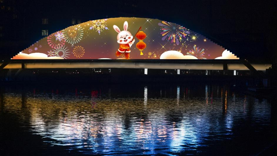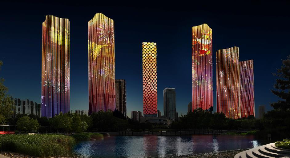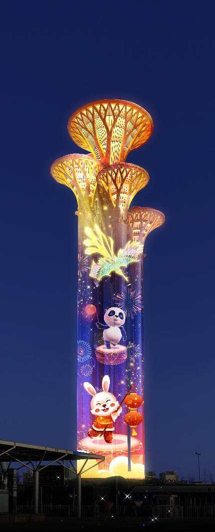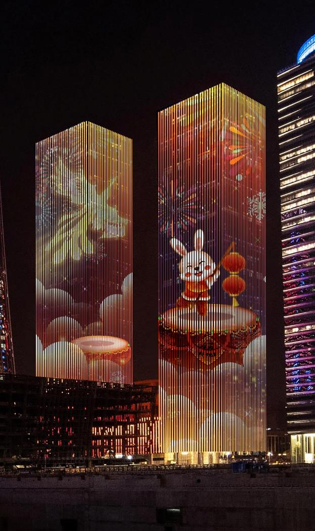 AR秀以“朝阳元宇宙·光影展宏兔”为设计主题,展现奥运塔上京鼓鸣、幻境画卷大望京、时空之镜CBD、水行梦幻亮马河、凤舞滕隆兔报春等五个精彩场景。