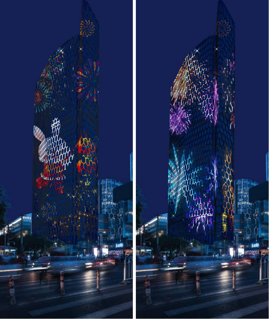 起此彼伏的光影更烘托了浓浓的春节氛围