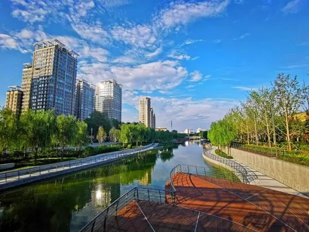 亮马河四环以上段景观廊道建设工程,将朝阳区委区政府创新提出的“共商、共治、共建、共管、共享、共赢”治理模式进行了先行探索实践,将沿岸红线外建筑与红线内滨水空间,因地制宜地紧密结合。