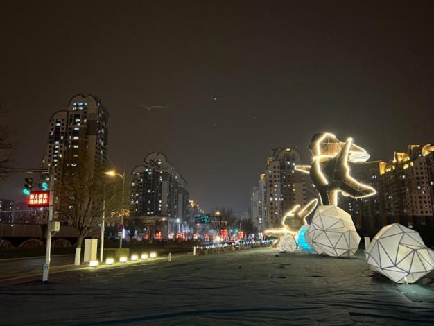 新春佳节临近,大红灯笼、中国结、夜景灯光、树挂灯饰等将装点丰台区的大街小巷。1月20日起,丰台区将按照重大节日标准开启夜景照明,开启丽泽商务区灯光秀,点亮西三环。全区将在72条道路悬挂灯笼灯饰5300余组,布置4处节点景观、7条夜景靓丽街、18处过街天桥夜景照明。丽泽商务区、中关村丰台园区域将推出新年灯光秀。兔年新春,丽泽商务区将上演精彩的灯光秀。在灯光秀中,“烟花”图案、以及各类组合图案,呈现欢乐吉祥的节日氛围。
