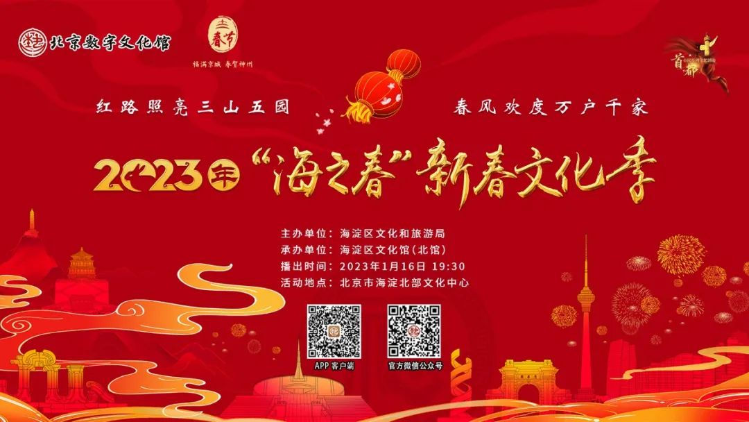 为深入学习贯彻党的二十大会议精神和习近平新时代中国特色社会主义思想,培育和践行社会主义核心价值观,挖掘传统节日的文化内涵,着力营造具有海淀特色、丰富多彩、积极向上的浓郁节日氛围,传承中华优秀传统文化,特举办“海之春” 新春文化季活动。