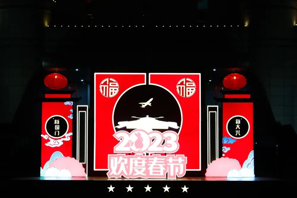 新年新气象,玉兔送吉祥。在辖区各大商圈,树木氛围灯、楼体线条灯等灯饰动静结合、联动统一、变幻多姿,彰显城市魅力。区政府门前的欢度春节主题景观,融入大兴国际机场元素,寓意新的一年更加奋发有为建设“新国门、新大兴”。