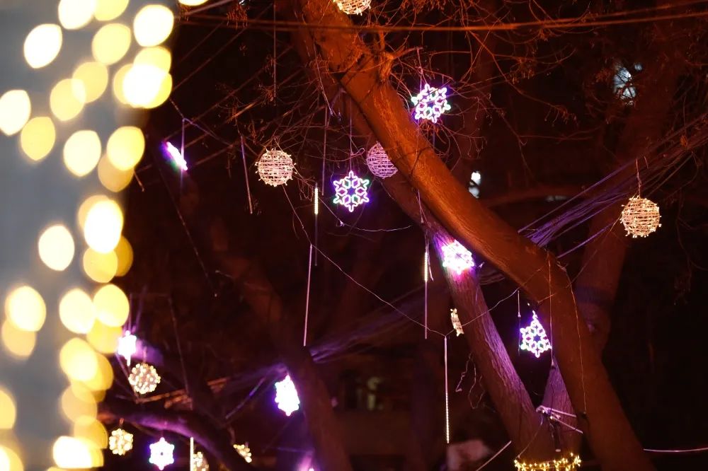 主干道两旁悬挂着“灯笼串”“中国结”等元素灯箱,与万家灯火融为一体,不仅让夜晚的林校更加璀璨夺目,也为归家的人们带来暖意,充满浓浓年味。