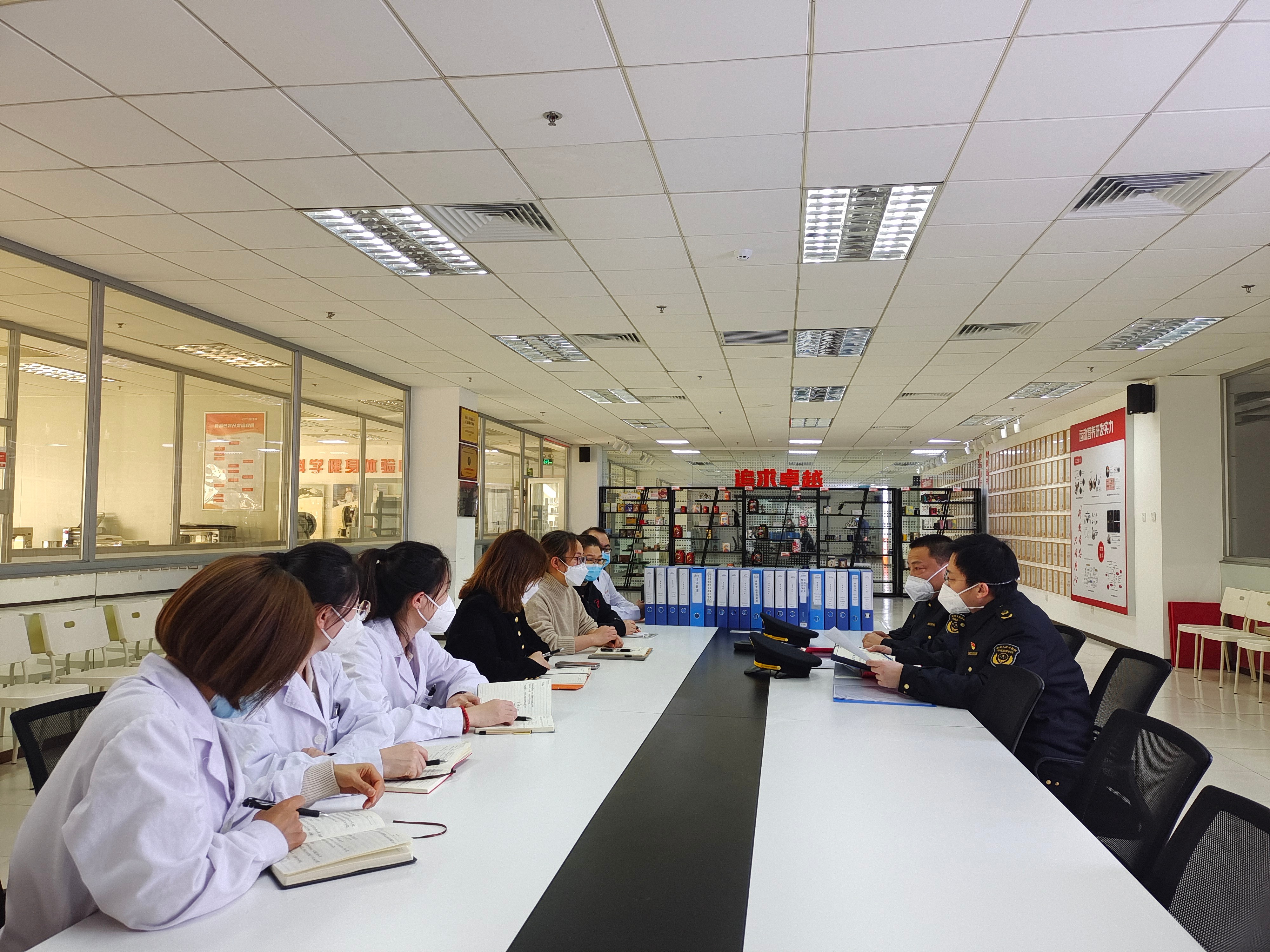 日前,执法人员来到北京康比特体育科技股份有限公司,对企业生产线、保健食品专用标志、保健食品生产质量管理体系运行等情况开展实地检查,重点查看了企业“日管控、周排查、月调度”工作机制记录、食品安全总监授权令以及食品安全员授权令,并督促企业落实好“日管控、周排查、月调度”工作机制,切实提升企业食品安全管理水平、责任意识以及风险防控能力。