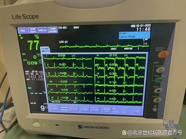 此时,已至深夜。紧急处理后,患者血压降至安全范围,给予了阿司匹林抗血小板治疗,倍他乐克防治心脏破裂治疗。患者到确诊时,已错过了溶栓窗口时间。为了安全起见,当晚就留在了医院心电监测观察。