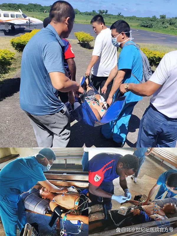 本着生命至上的原则,患者所属机构连夜决定,第一时间转运患者至维拉港!然而,长途转运这种大面积心肌梗死患者的风险极高,很多不可预测的因素随时可能发生。第二天一大早,医疗队备好急救药物和除颤仪,派专家叶慧明医生随专机前往Tanna岛为转运患者保驾护航。