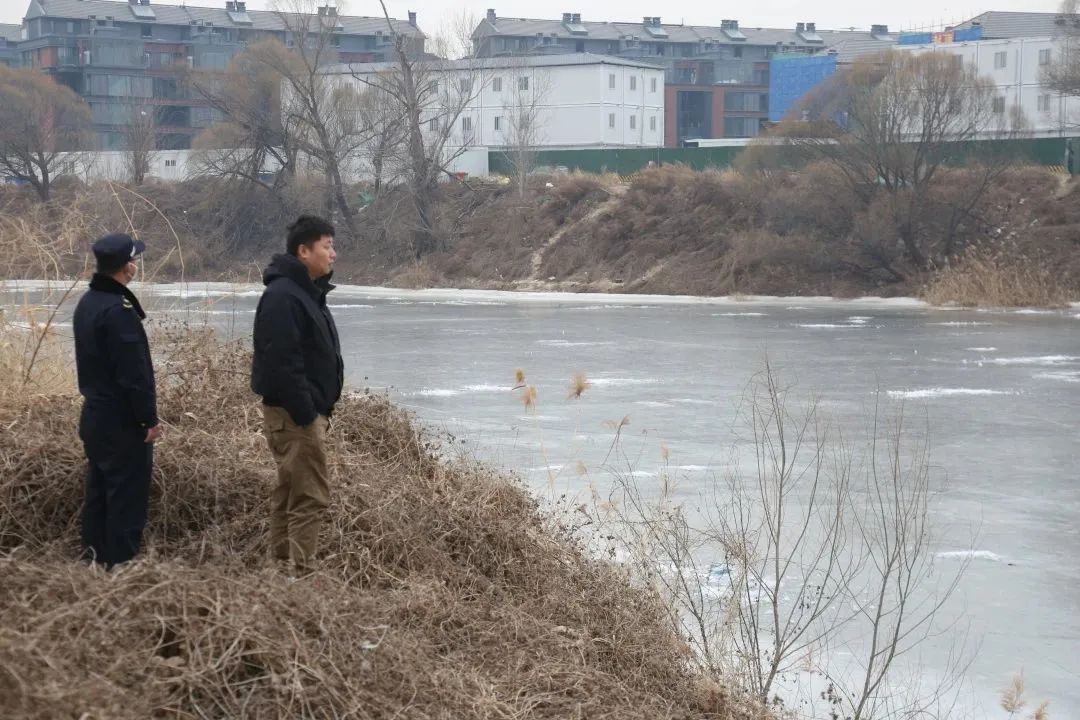在位于小店村北侧的冰面现场,地区农服、综合行政执法队、小店村委会工作人员共同对冰面及周边进行巡视,对部分在冰面凿冰钓鱼或滑野冰群众进行劝阻并进行安全教育。同时根据现场位置、冰面等实际情况制定了详细的巡查安排,做好后续的巡查工作。