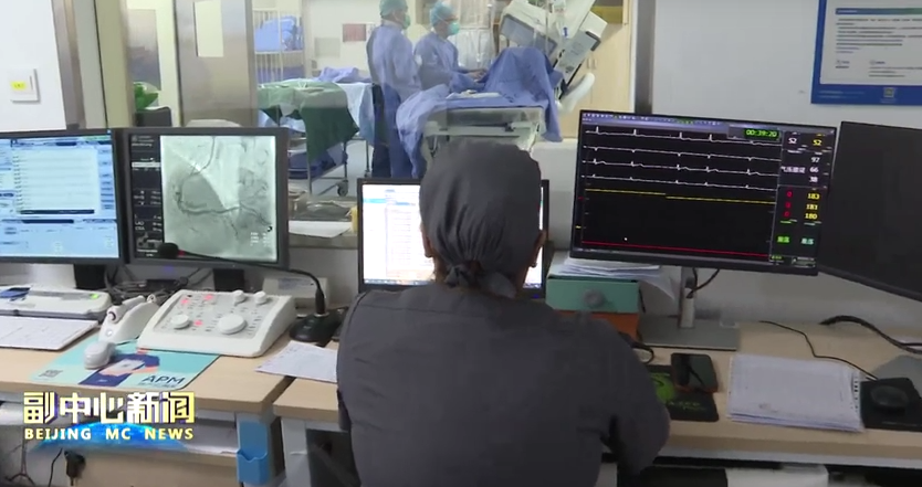 日前,记者在北京大学人民医院通州院区介入诊疗中心看到,一场心内科介入手术正在进行中。医生通过介入手术为患者植入心脏支架,可直达患处,术程短,无创口。