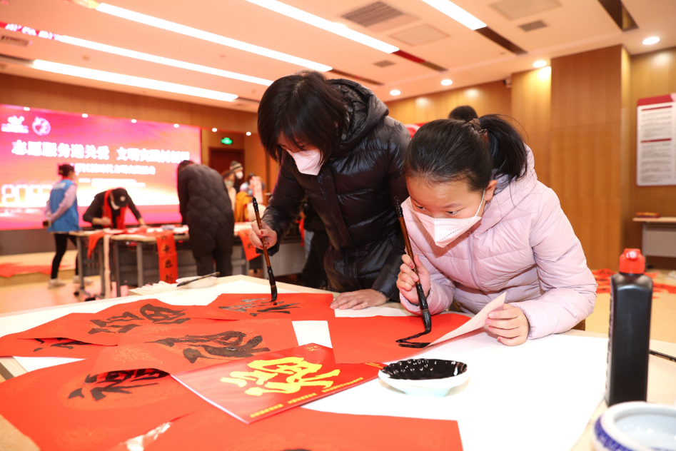 活动通过书写福字春联、手工制作兔子灯笼,“健身大拜年”等丰富多彩的活动,给周边社区的居民增添了满满年味。