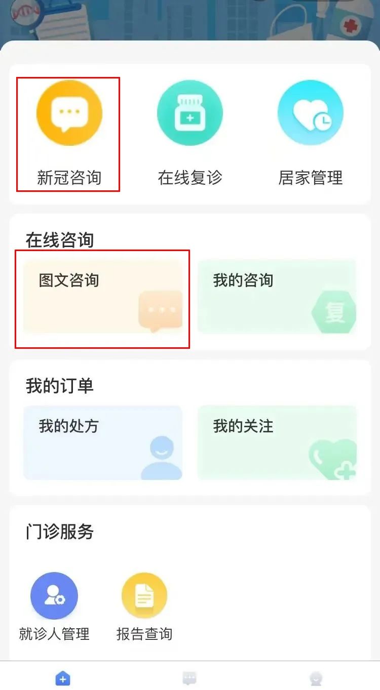 需要在线问诊的居民,点击新冠咨询或图文咨询,选择相应的医院问诊。