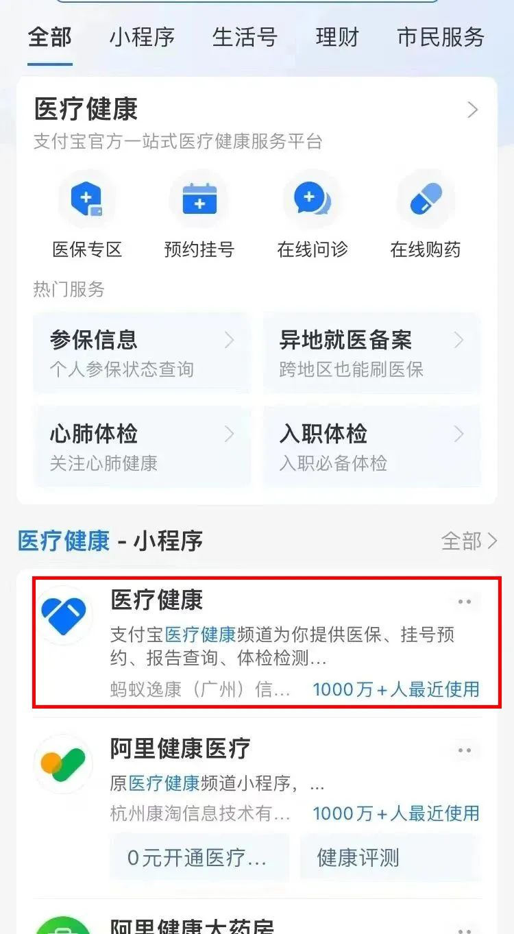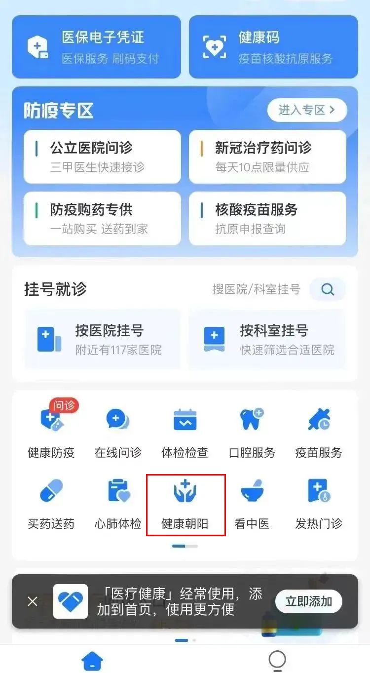打开支付宝“医疗健康”频道,进入“健康朝阳”板块。