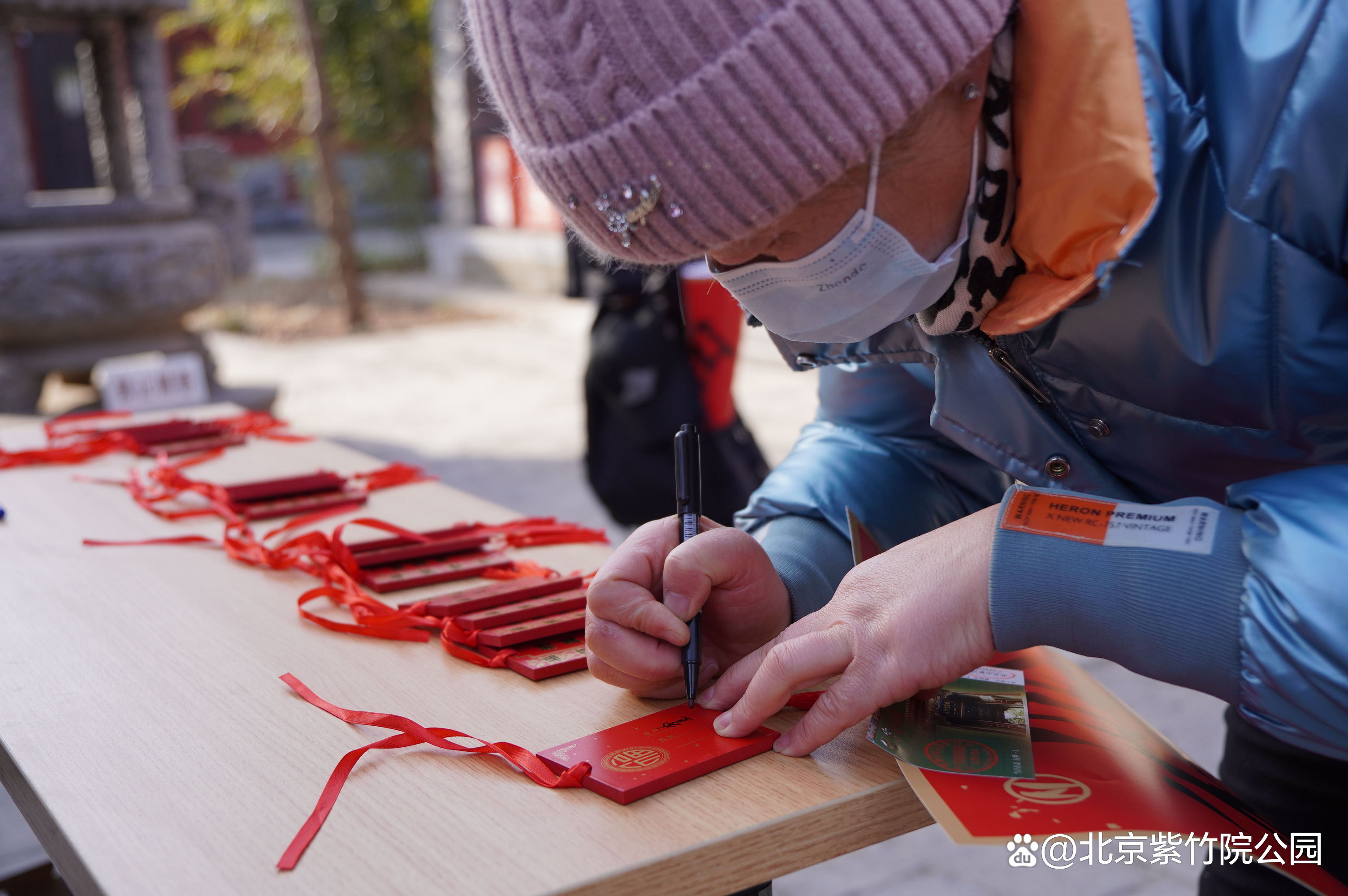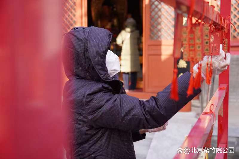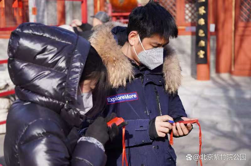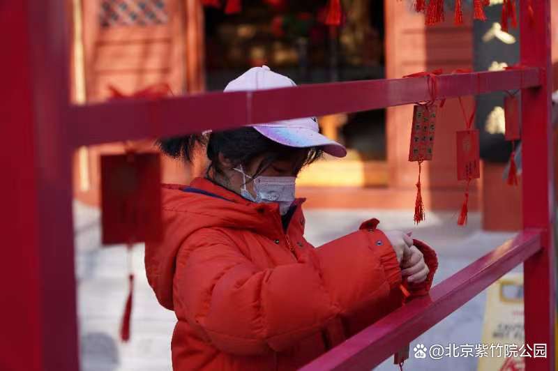 1月22日上午,紫竹院行宫举办祈“福”、送“福”活动,在紫竹禅院祈福活动区,游客领取祈福福牌,在福牌上书写专属于自己的美好寄语。公园为游客准备了“开年洪福”,寓意“福气至、好运来”。祝愿广大游客在新的一年里,平安喜乐、顺遂美满。