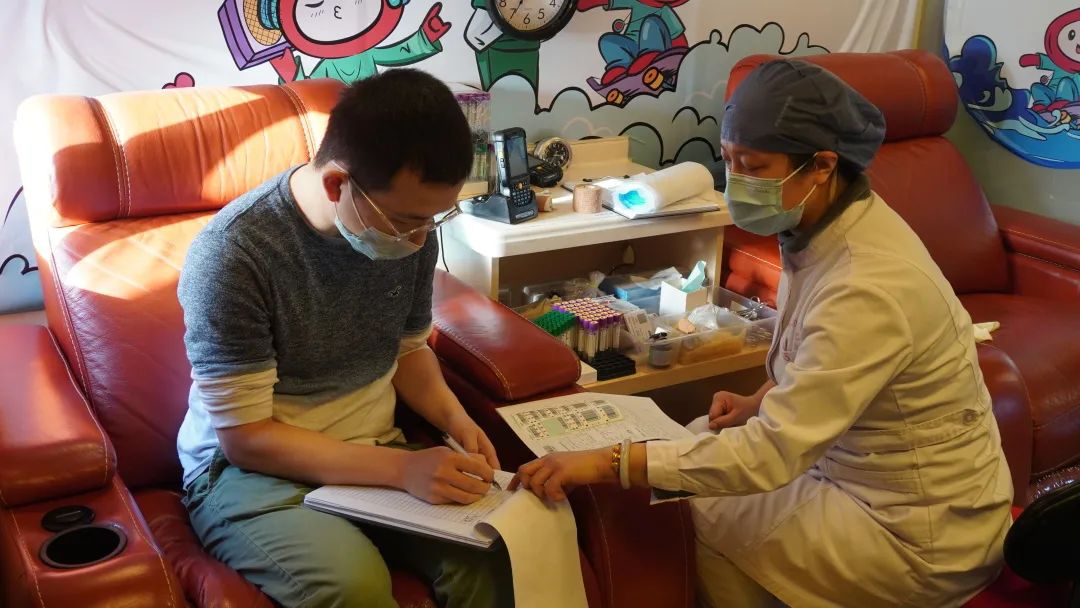 连日来,北京气温屡创新低,但不能阻挡献血站医护人员坚守岗位的热情。他们一早就来到献血车整理物料、清洁车内环境,为一天的献血服务做好准备。虽然天气寒冷,但医护人员的心却是火热的,他们会送上一声问候,递上一杯热水,用热情的服务为前来献血的人们“点赞”。“无偿献血意义重大,献血者都能在春节期间,不惧天气严寒来献血,我们又怎么能退缩呢!”献血站护士金宁是一名工作7年的采血护士,今天已经是她坚守岗位的第三天。