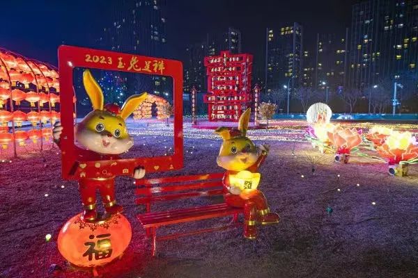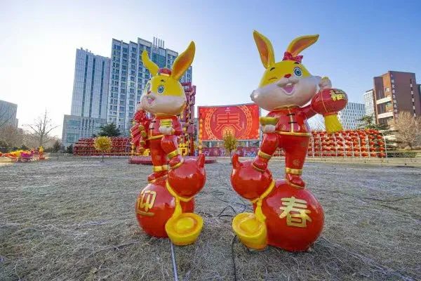 兔年春节到,北京经开区的各大广场都纷纷采用了“兔”元素,打造出张灯结彩、锣鼓敲响的中国年味。有些兔元素伴随夜幕降临一同亮起,给经开区营造出喜庆、祥和、欢乐的氛围。