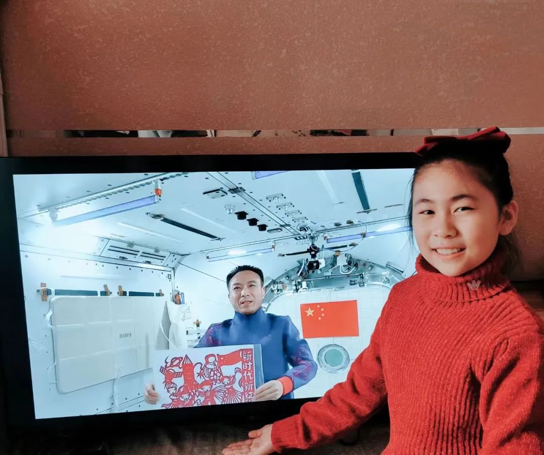 “快看,我的剪纸上太空了!”看到自己的画作在太空中被展示出来的那一刻,威海小学生徐梓涵激动地喊起来。