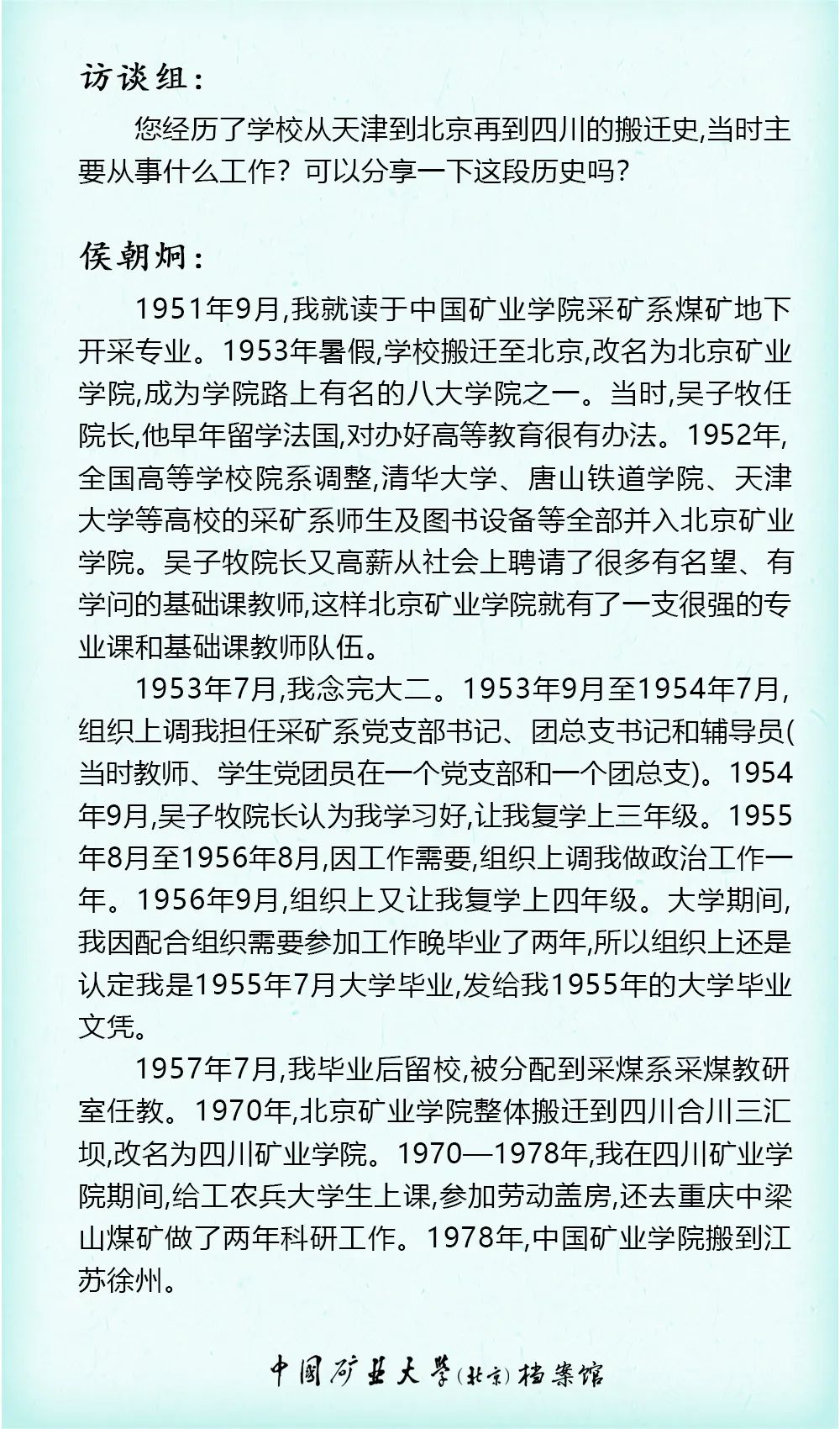 2019年11月,学校正式启动了口述校史工作。我们虚心向中国传媒大学崔永元口述历史研究中心的林卉老师请教,进行业务学习和培训;积极在全校范围内开展“我矿记忆·口述校史”寻访人选的确认工作;同时成立了校史文化社学生社团,组建口述访谈队伍。通过前期的业务交流学习、寻访人选、组建队伍,为顺利推进首次开展的口述学科史的访谈工作奠定了基础。