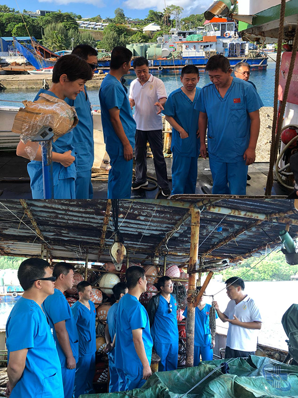 初五,医疗队前往中水公司维拉港码头,参观满载而归的远洋捕捞船。中水公司相关人员为医疗队介绍公司发展规划和远洋捕捞作业流程,全体队员深刻感受到了作业人员的艰辛付出和爱岗敬业。