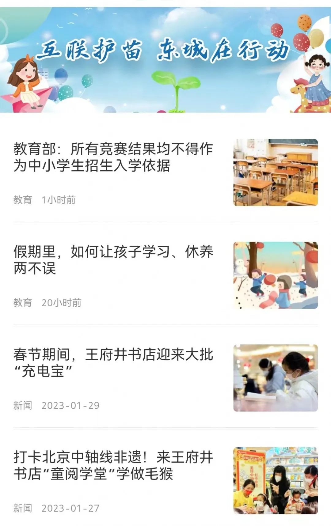 “北京东城”APP开设“互联护苗 东城在行动”专题